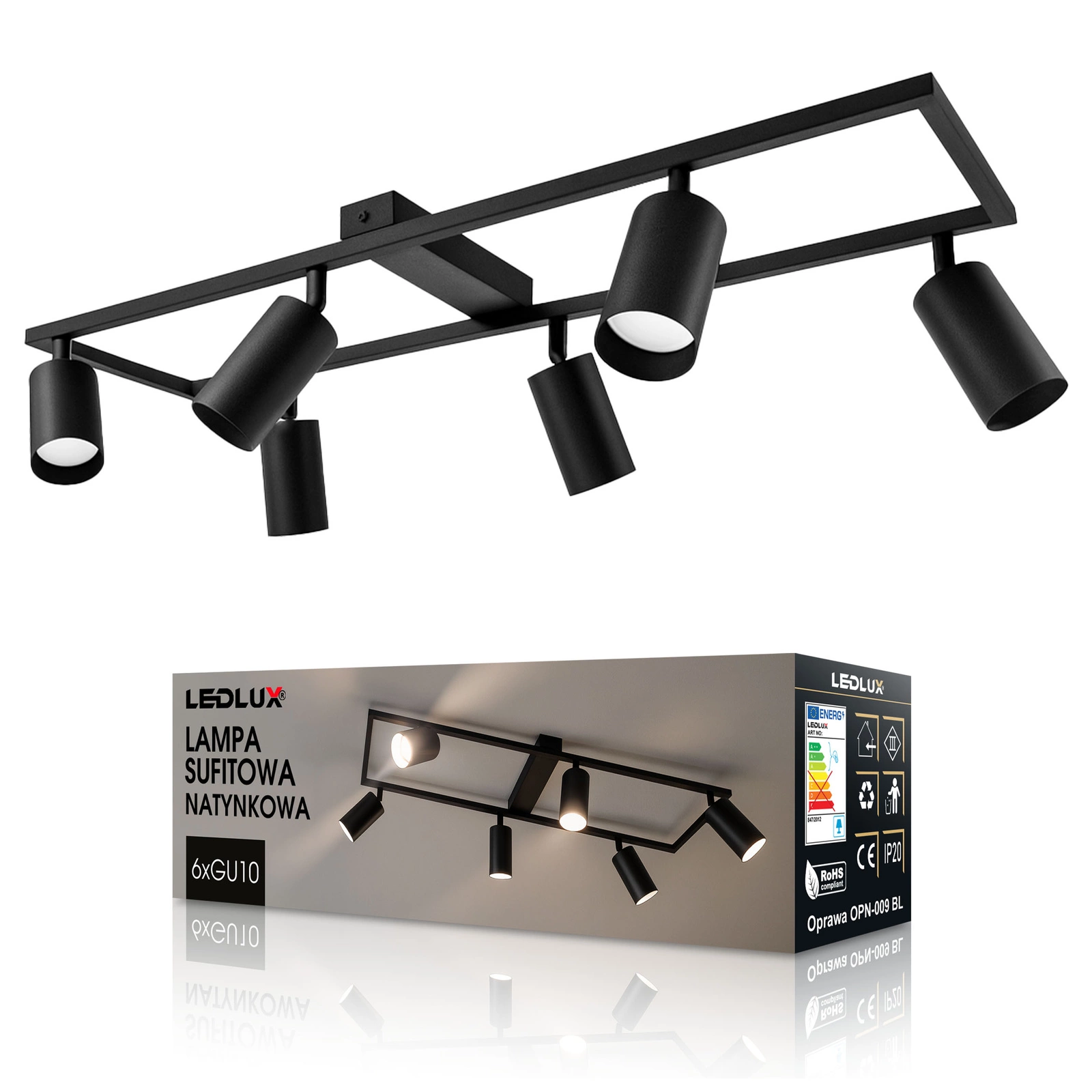 LAMPA SUFITOWA 6xGU10 czarna regulowana SPOT oprawa halogenowa natynkowa OPN-010 6x GU10 BLACK