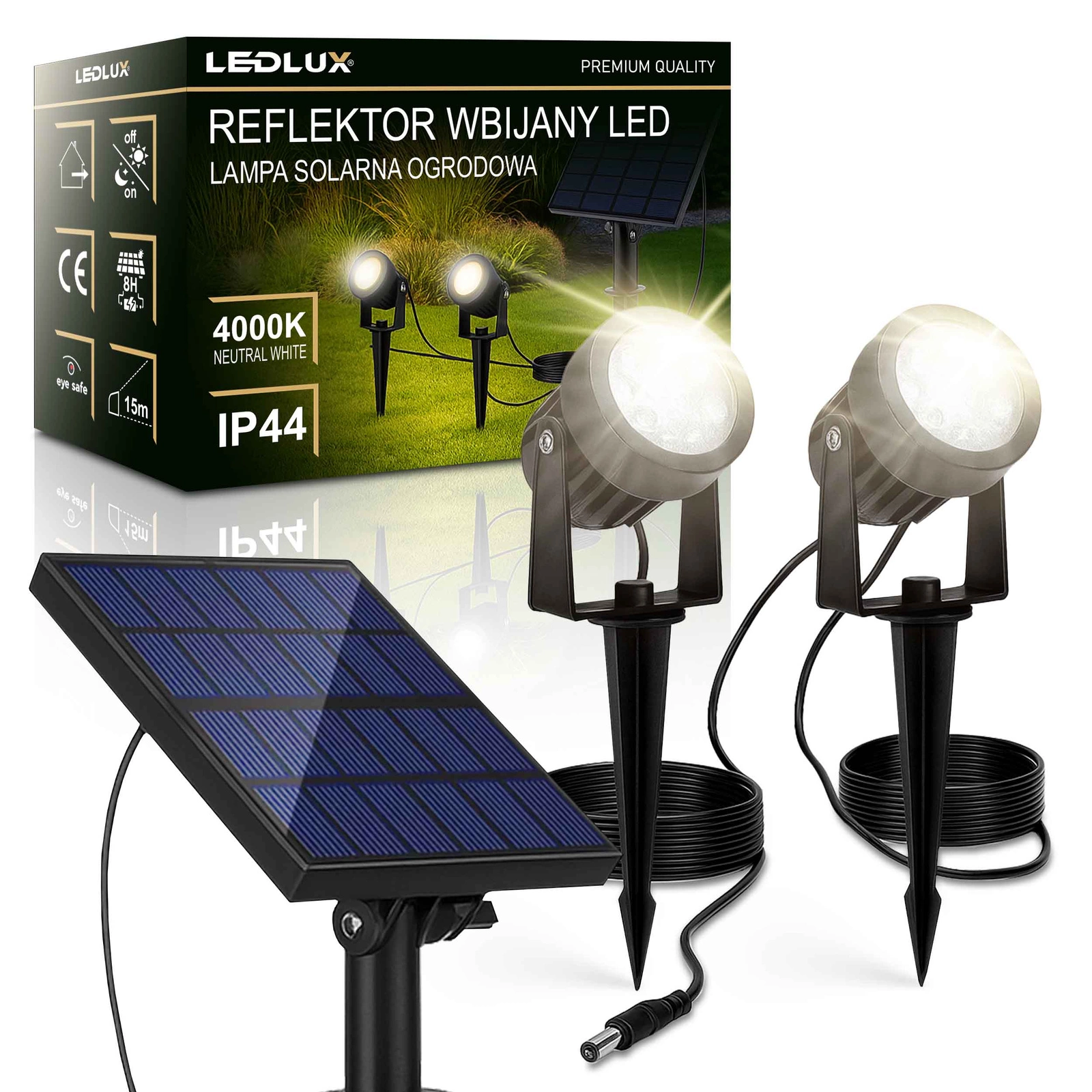 ▪️ Dwie mocne głowice LED – kierunkowe podświetlenie zieleni i architektury