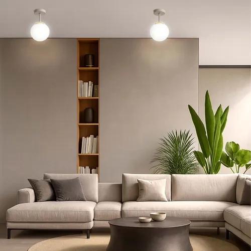 - Ta elegancka lampa sufitowa z kloszem w formie kuli sprawdzi się w wielu aranżacjach i pomieszczeniach:
