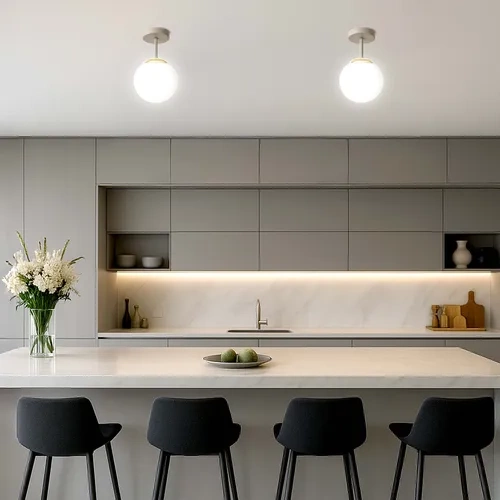 ▪️Oświetlenie do kuchni – można zastosować kilka lamp w linii nad blatem lub wyspą