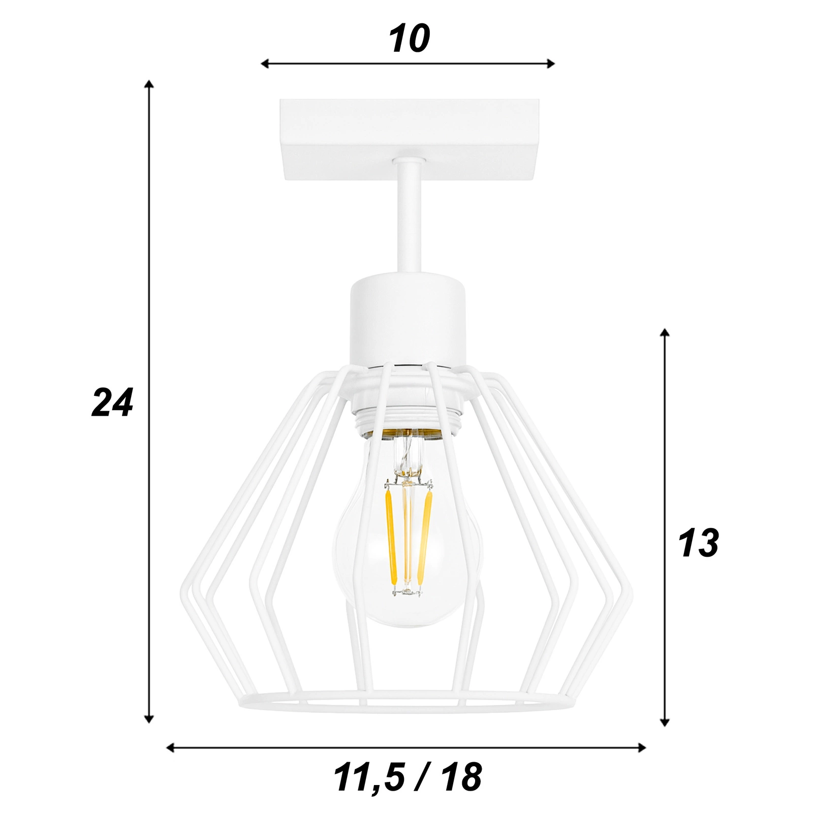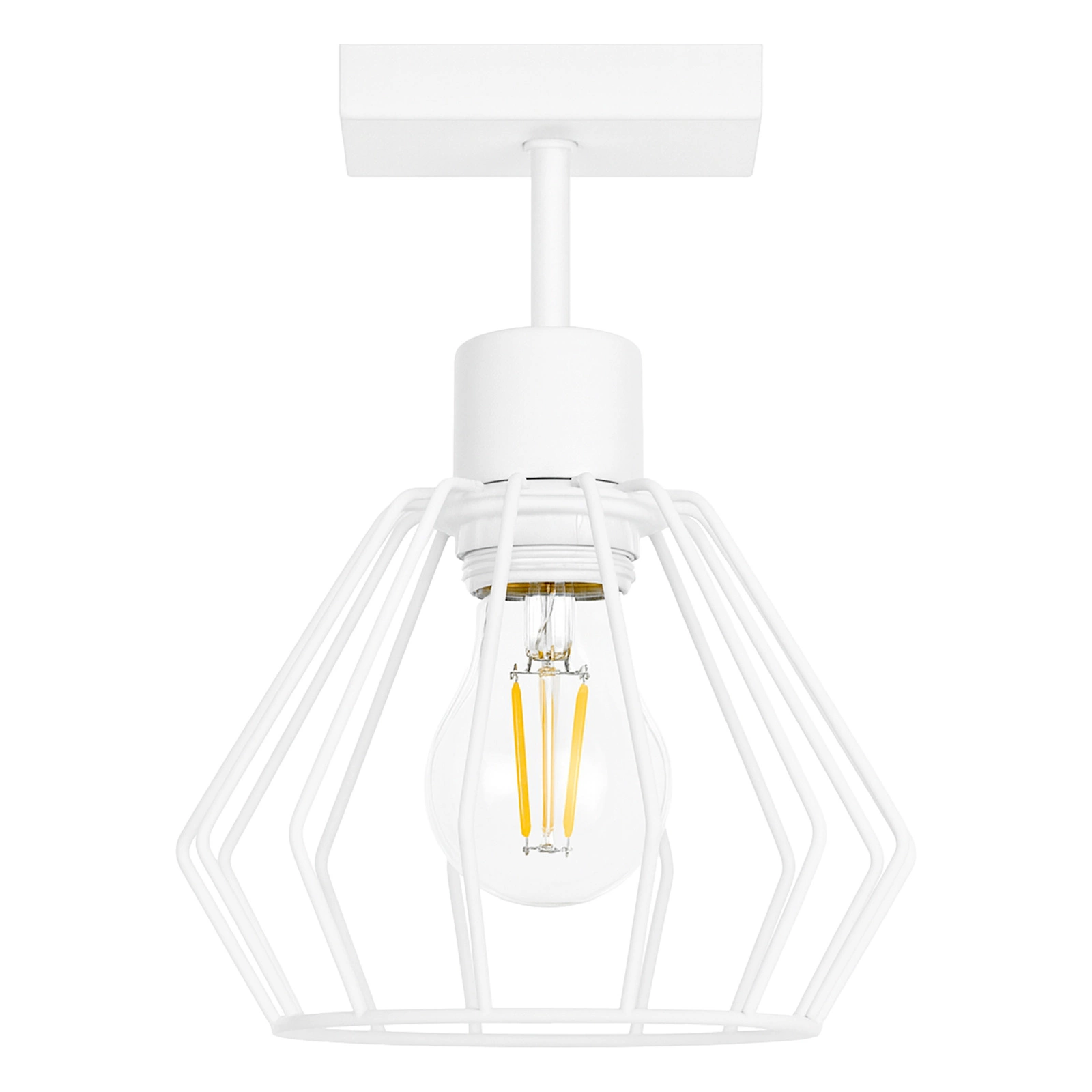 - Wzbogać swoje wnętrze o nowoczesną lampę sufitową w stylu loft, która idealnie łączy industrialny design z funkcjonalnością. Dzięki metalowej klatkowej konstrukcji w kolorze białym, oprawa świetnie sprawdzi się w pomieszczeniach takich jak salon, kuchnia, sypialnia, korytarz, biuro czy lokal usługowy.