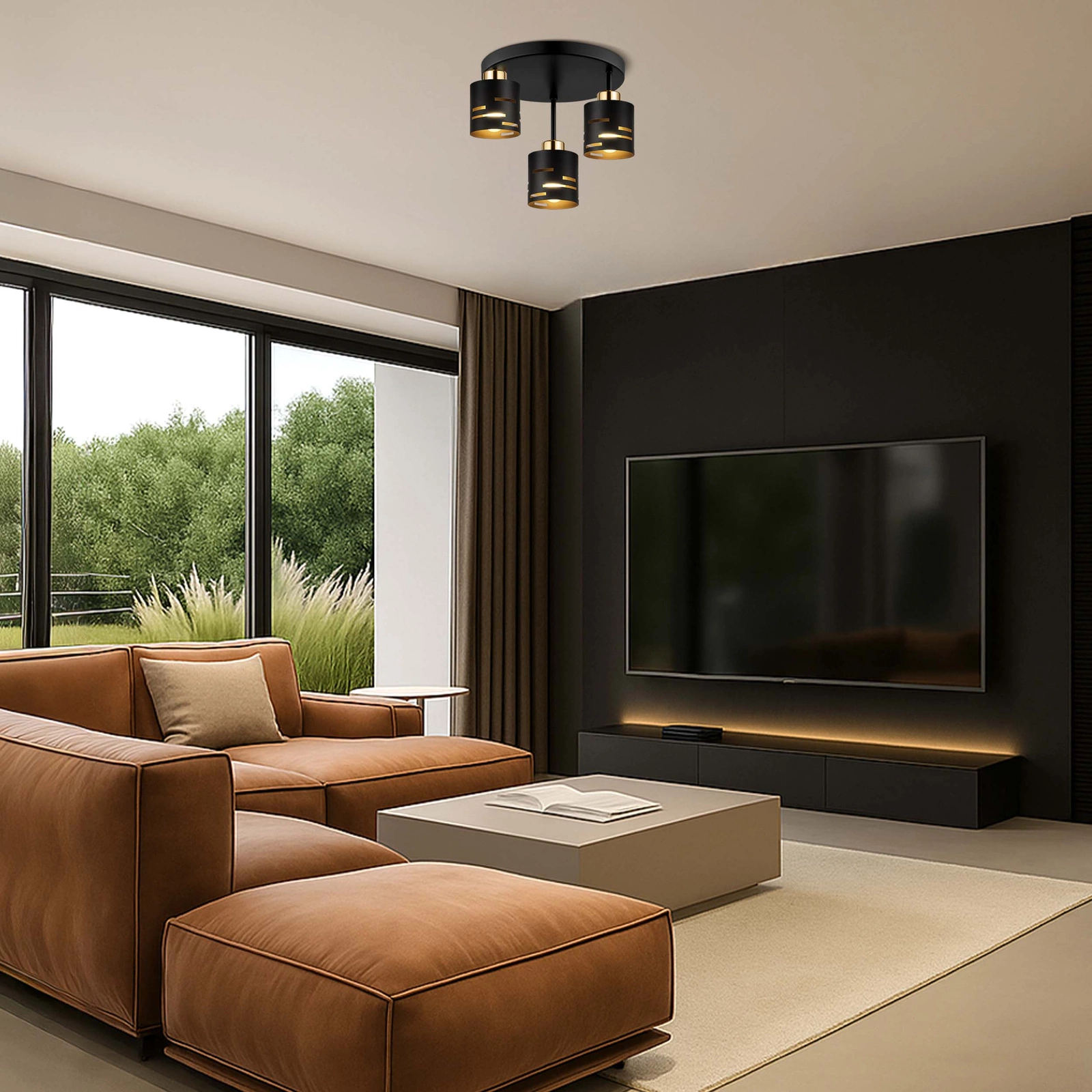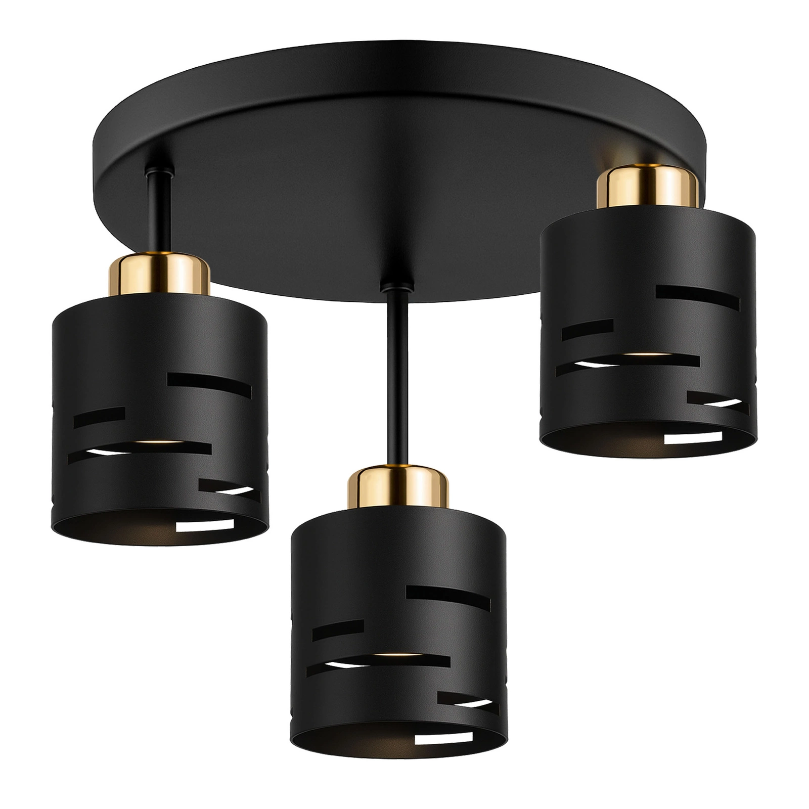 ✴️ Nowoczesna lampa sufitowa czarno-złota 3xE27 – elegancka lampa plafon / oświetlenie glamour