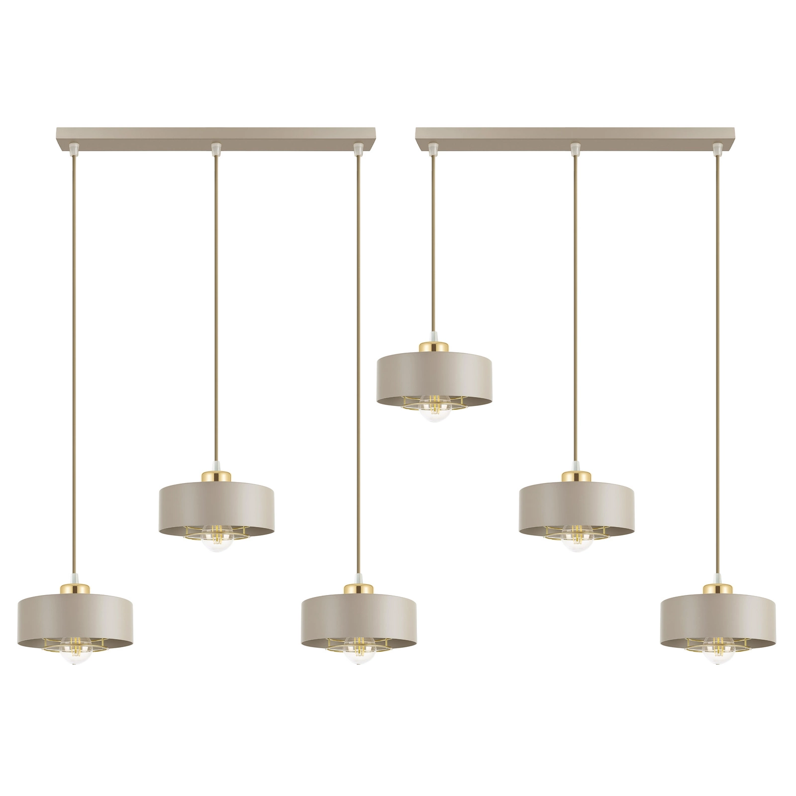 - ✅ Regulowana wysokość zawieszenia – każdy klosz można ustawić indywidualnie przed montażem, dzięki czemu dopasujesz lampę do wysokości pomieszczenia oraz efektu wizualnego, jaki chcesz uzyskać.