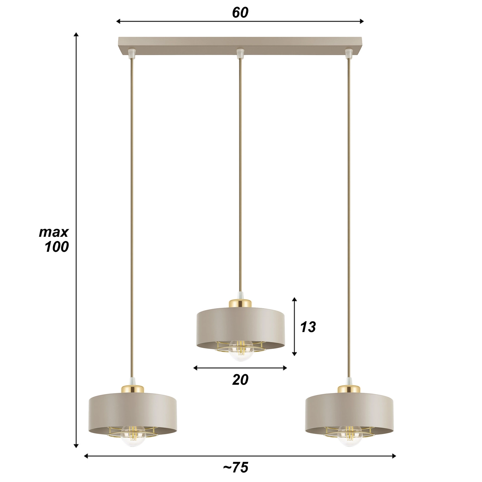 - Ta wyjątkowa lampa wisząca 3xE27 w kolorze beżowym (kaszmirowym) to połączenie elegancji, funkcjonalności i nowoczesnego designu.