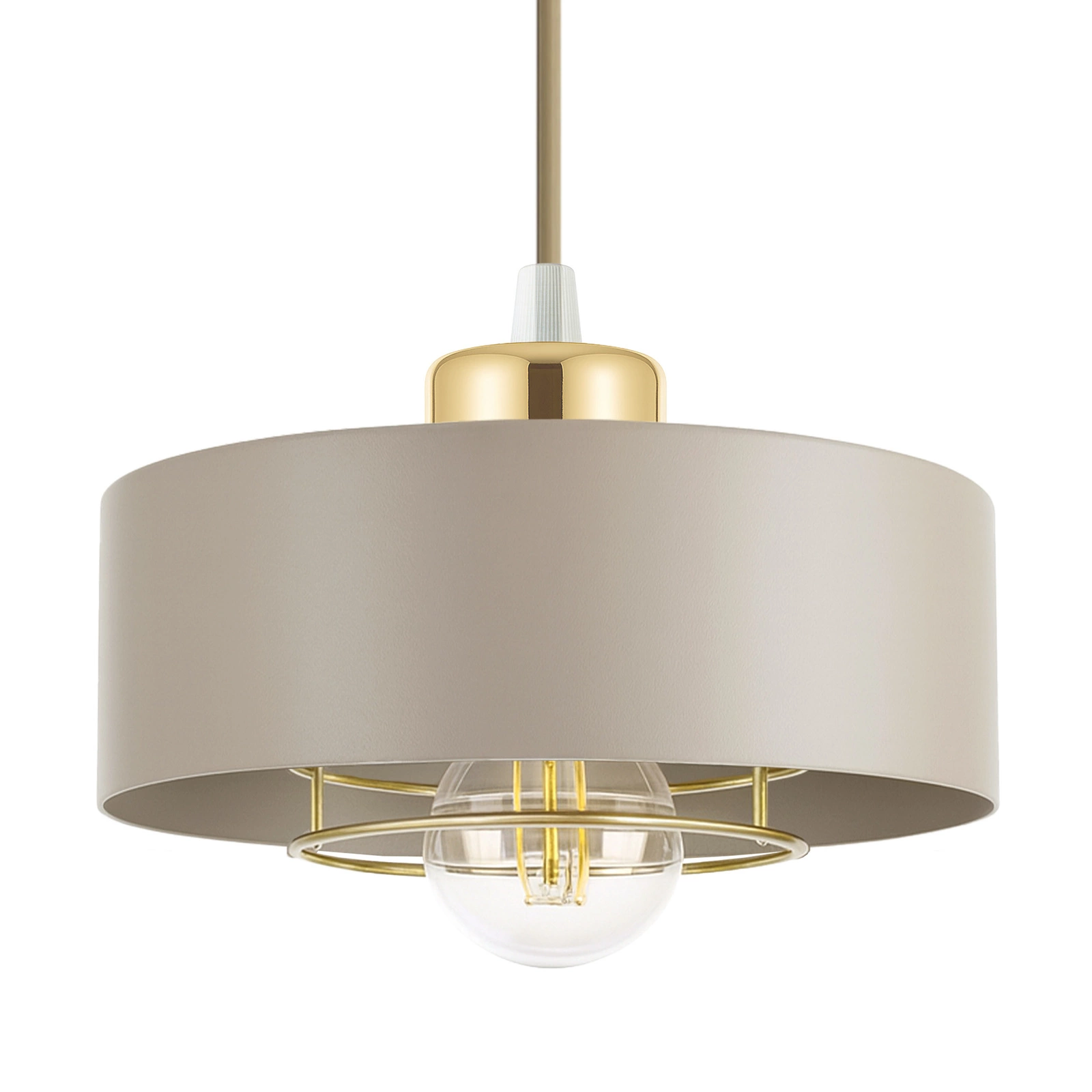 ✅ Stylowy detal – złote elementy i metalowa kratka wokół żarówki – dodają lampie lekkości i elegancji, tworząc subtelny akcent glamour.