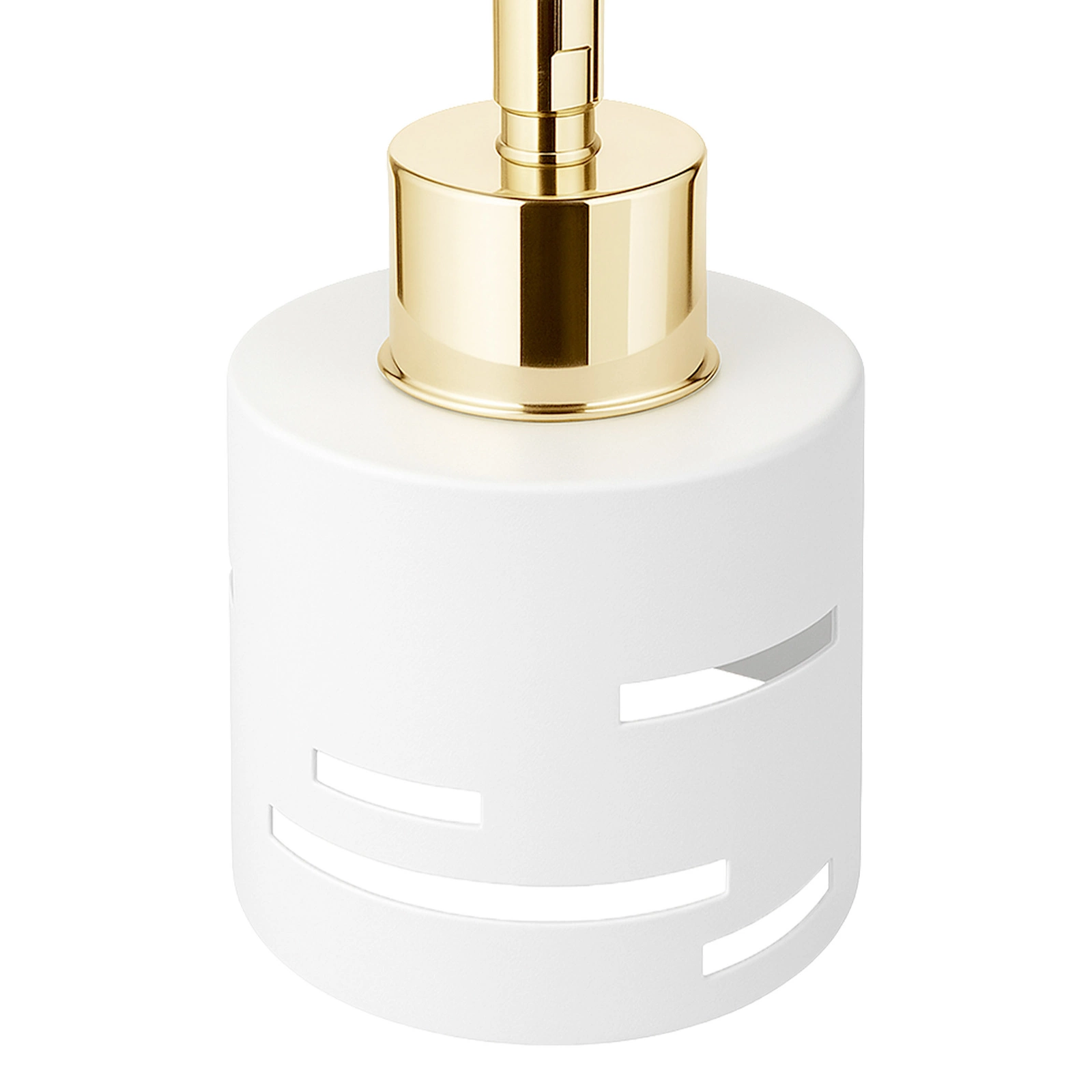 Biała matowa oprawa w połączeniu ze złotym elementem tworzy subtelny, ale luksusowy kontrast, który świetnie podkreśla wnętrza w stylu loft, nowoczesnym, glamour czy skandynawskim.