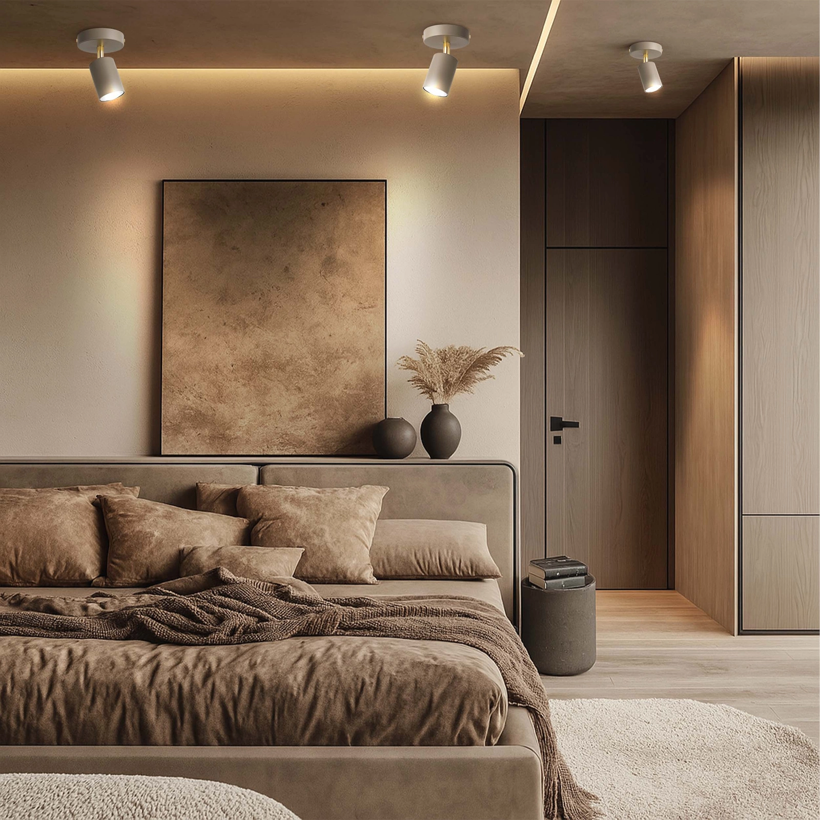 Możesz użyć jej jako lampy sufitowej, pojedynczego spotu, albo kinkietu – pełna dowolność montażu sprawia, że dopasowuje się do każdego pomieszczenia.