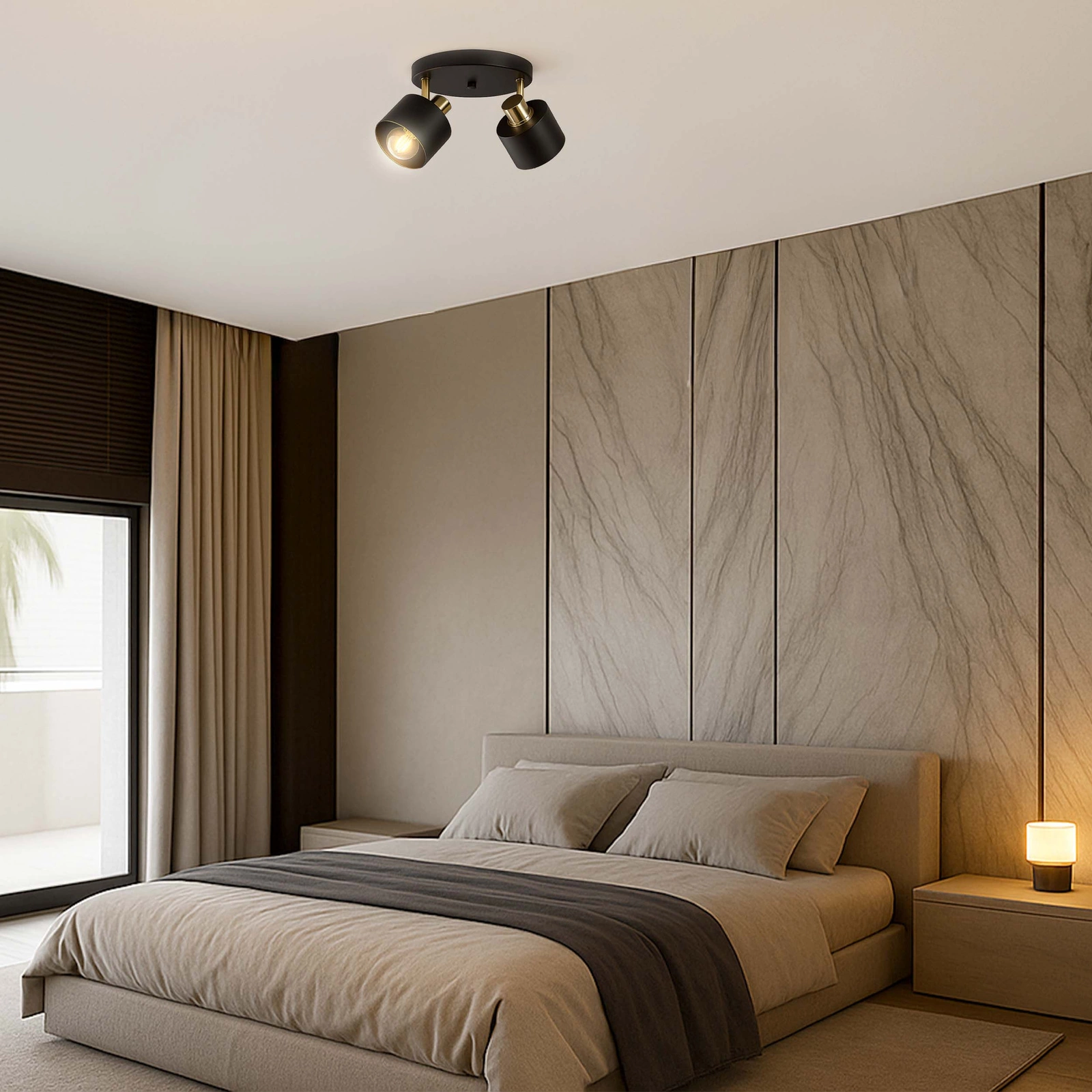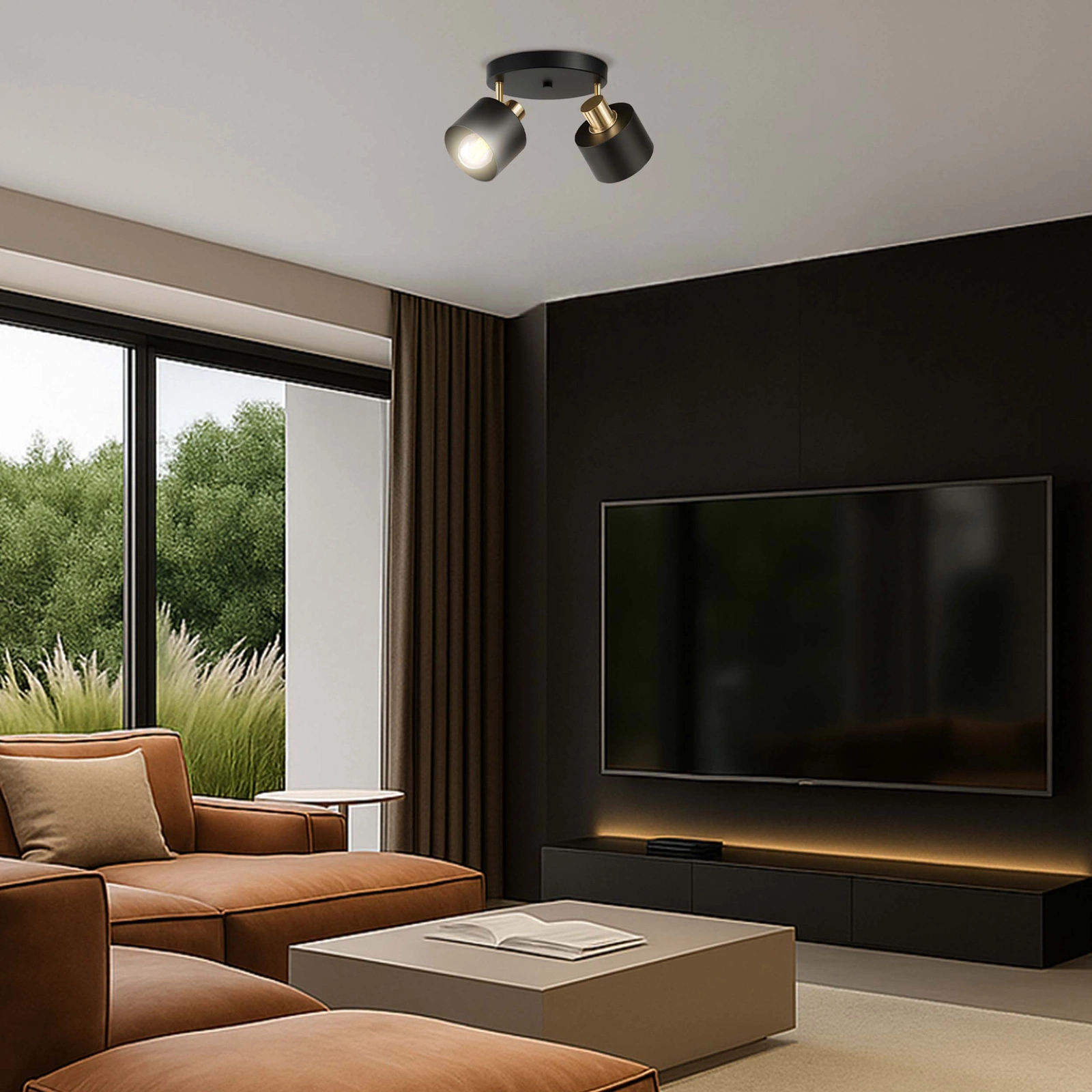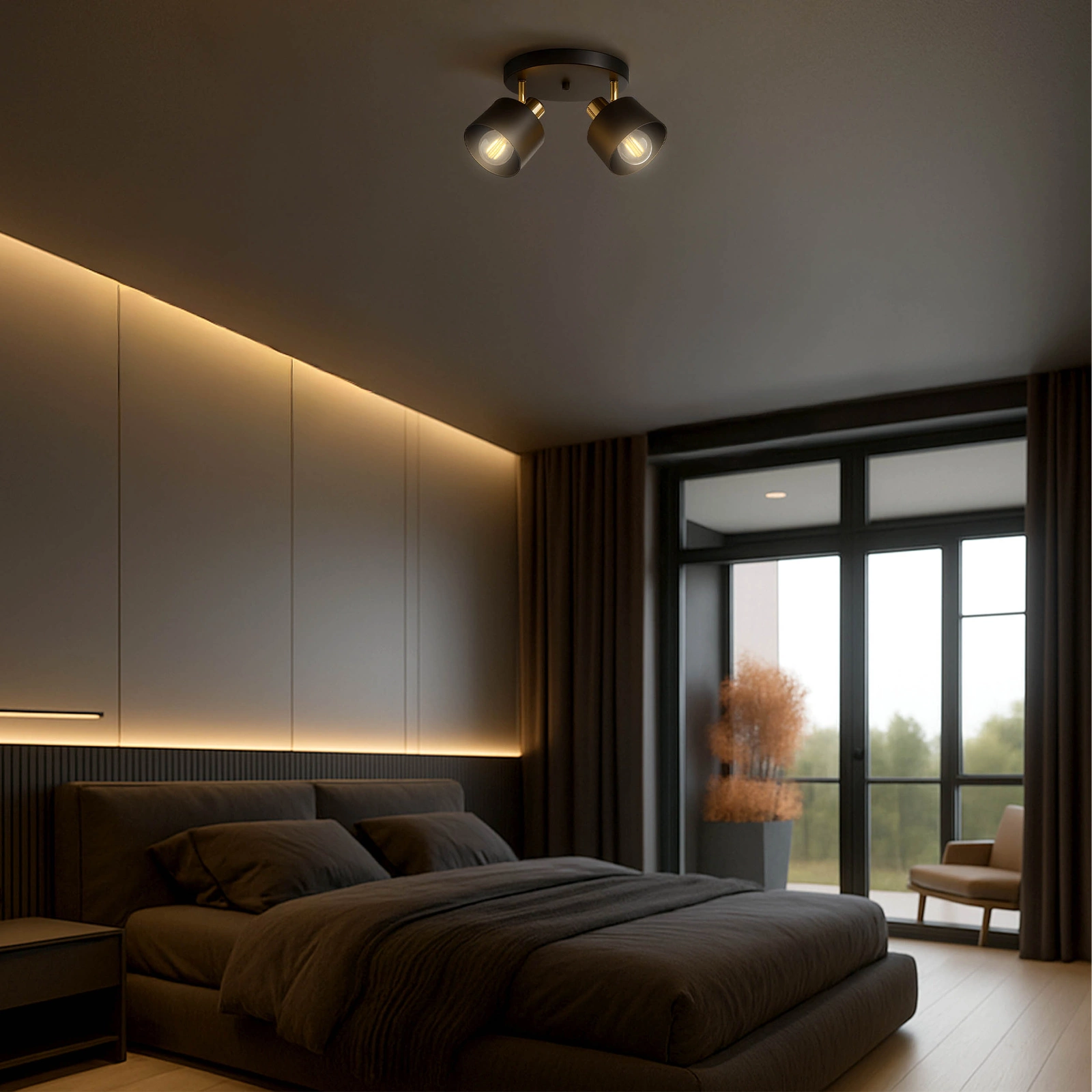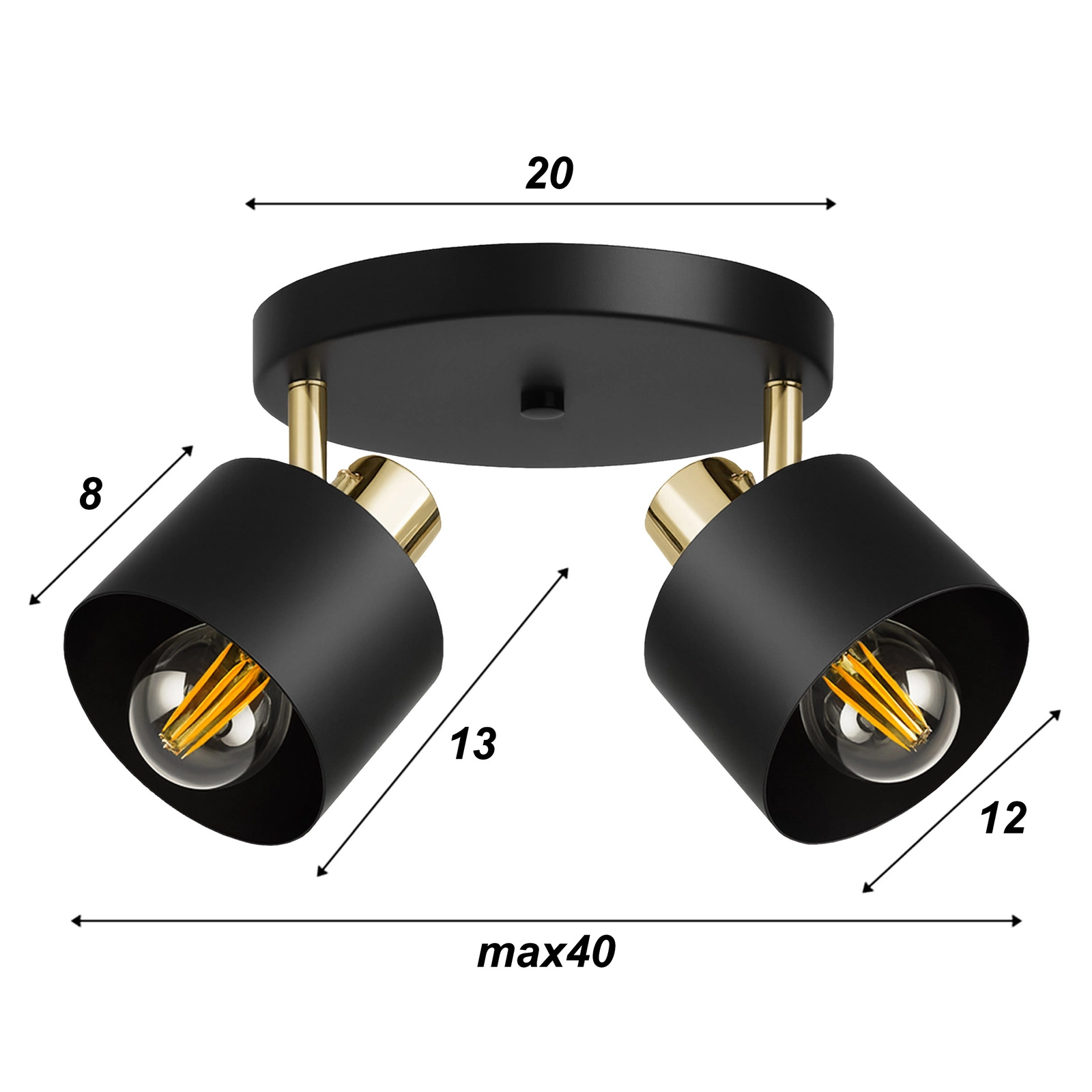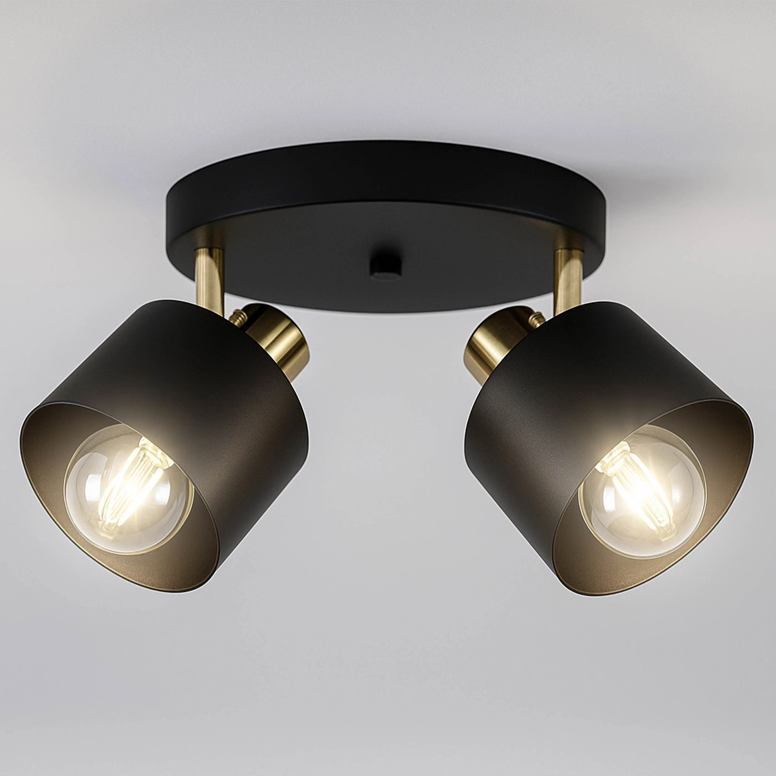 - Ta elegancka, podwójna lampa sufitowa w kolorze czarnym z subtelnymi złotymi akcentami to świetny wybór do nowoczesnych wnętrz. Łączy styl, funkcjonalność i precyzyjne oświetlenie — dzięki ruchomym głowicom pozwoli skierować światło dokładnie tam, gdzie jest potrzebne.