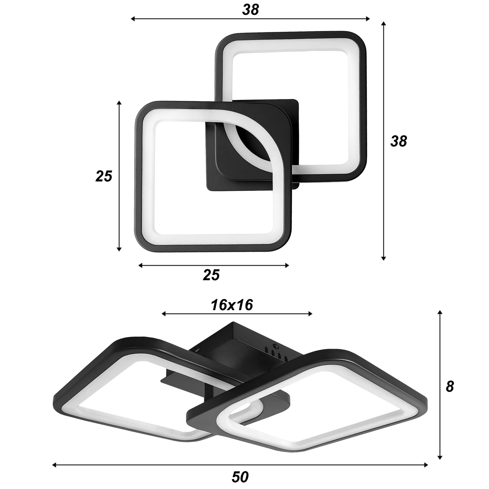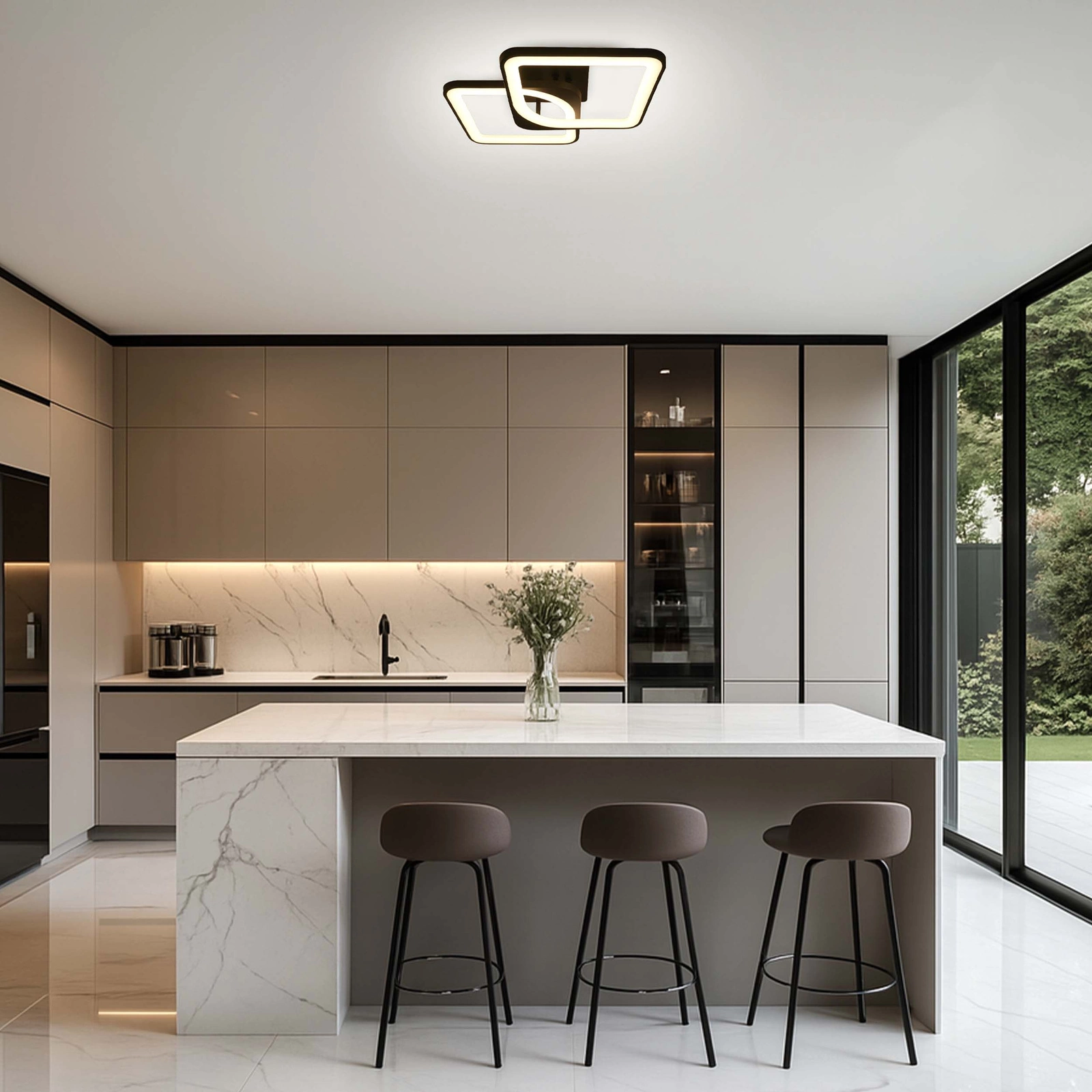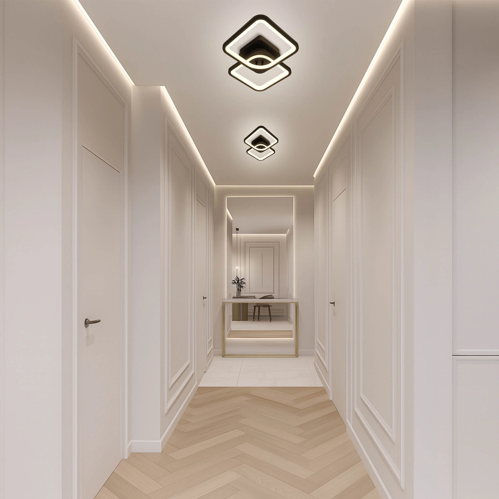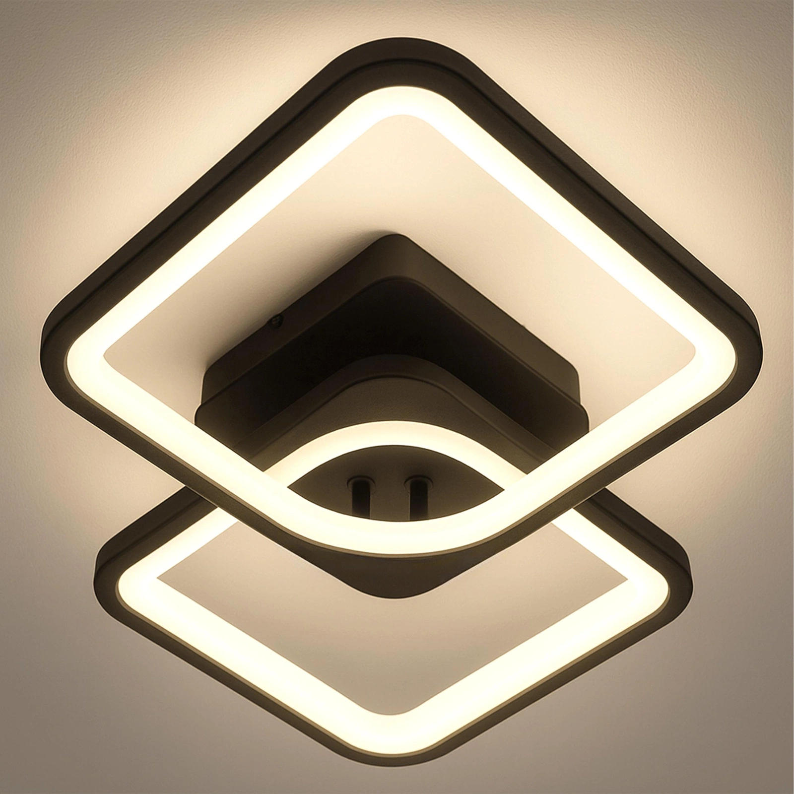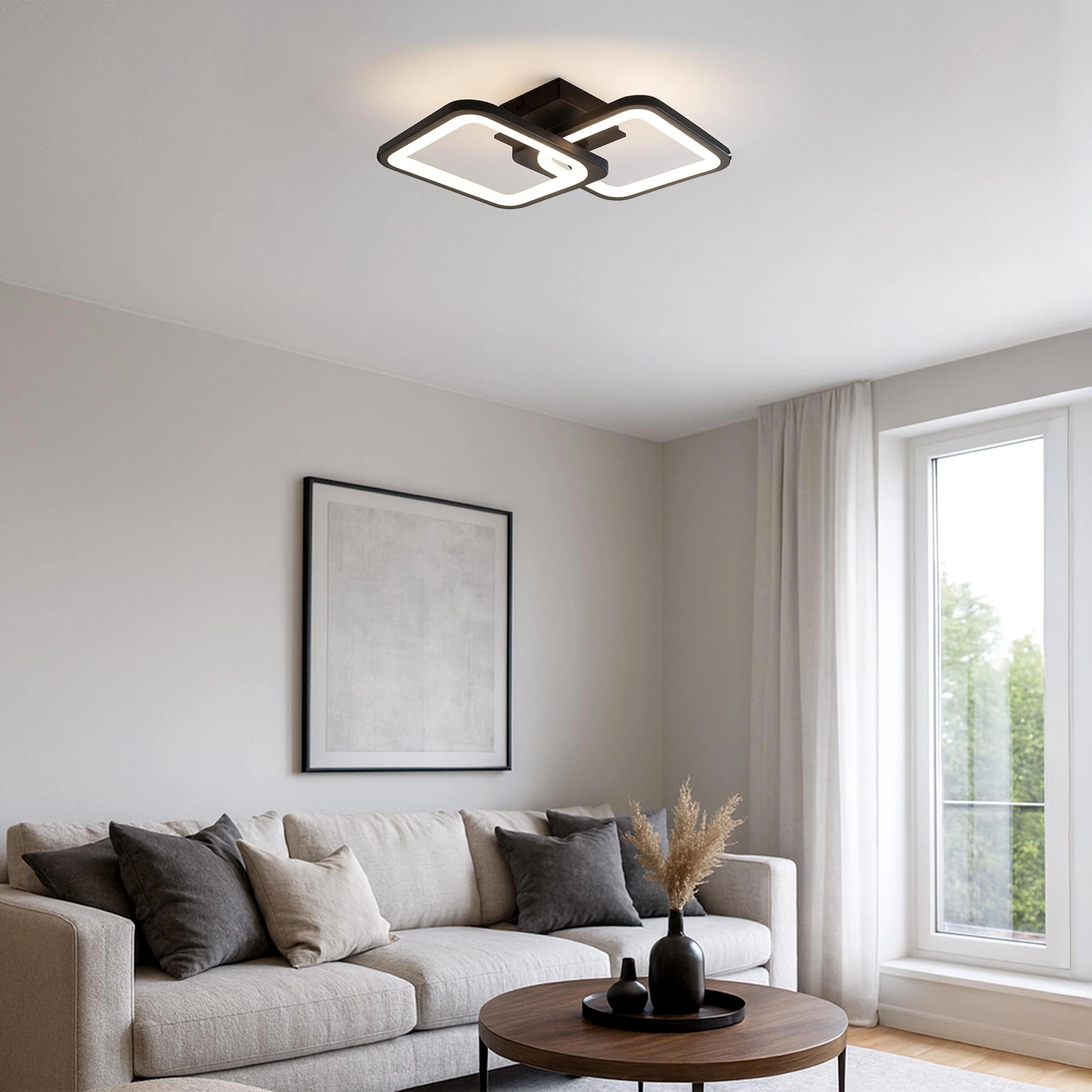- Ta plafoniera LED to idealne rozwiązanie do nowoczesnych wnętrz, w których liczy się zarówno wygląd, jak i komfort użytkowania. Dwa przeplatające się kwadraty tworzą efektowną, przestrzenną formę, a powierzchnia świecąca wykonana z grubego szkła gwarantuje trwałość, solidność i piękny efekt świetlny – bez widocznych punktów LED.