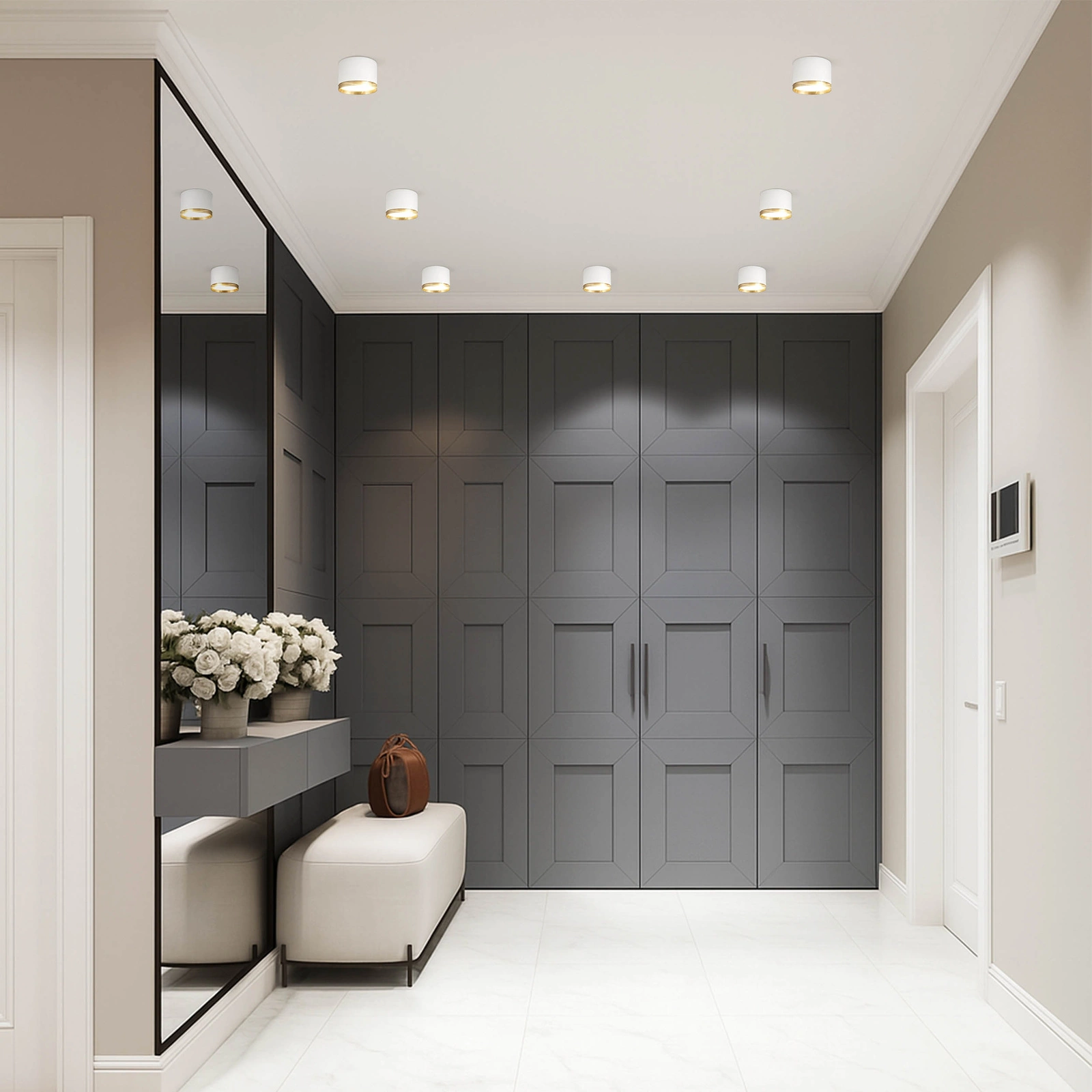 ✔️ Konstrukcja natynkowa pozwala zamontować oprawę praktycznie wszędzie — salon, kuchnia, przedpokój, biuro.