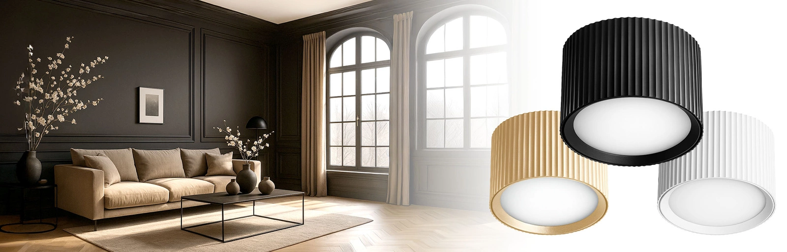 Oprawa montowana bezpośrednio do sufitu, co pozwala szybko stworzyć nowoczesne oświetlenie nawet przy braku miejsca na sufit podwieszany.