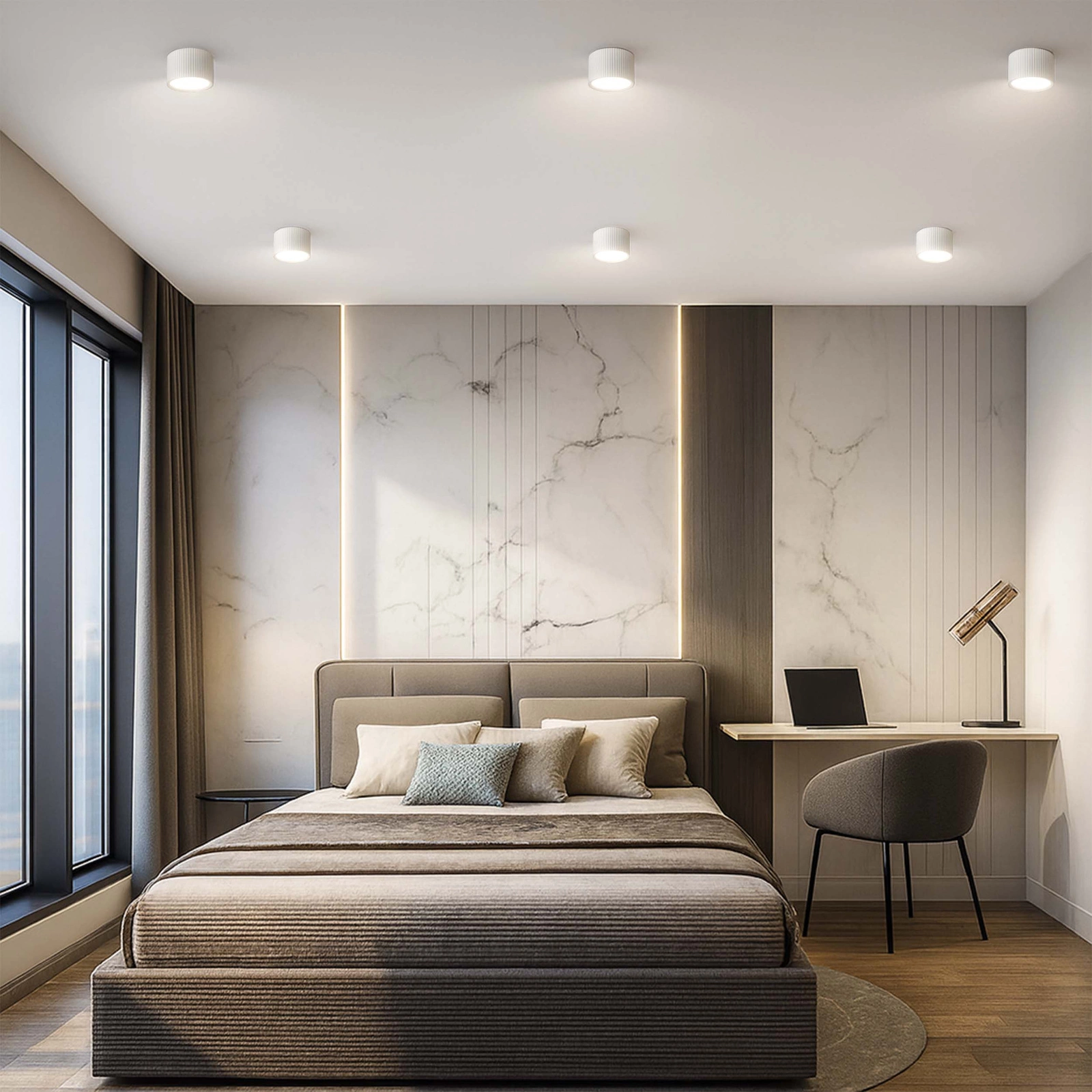 ▪️ sypialni – nastrojowe, punktowe oświetlenie