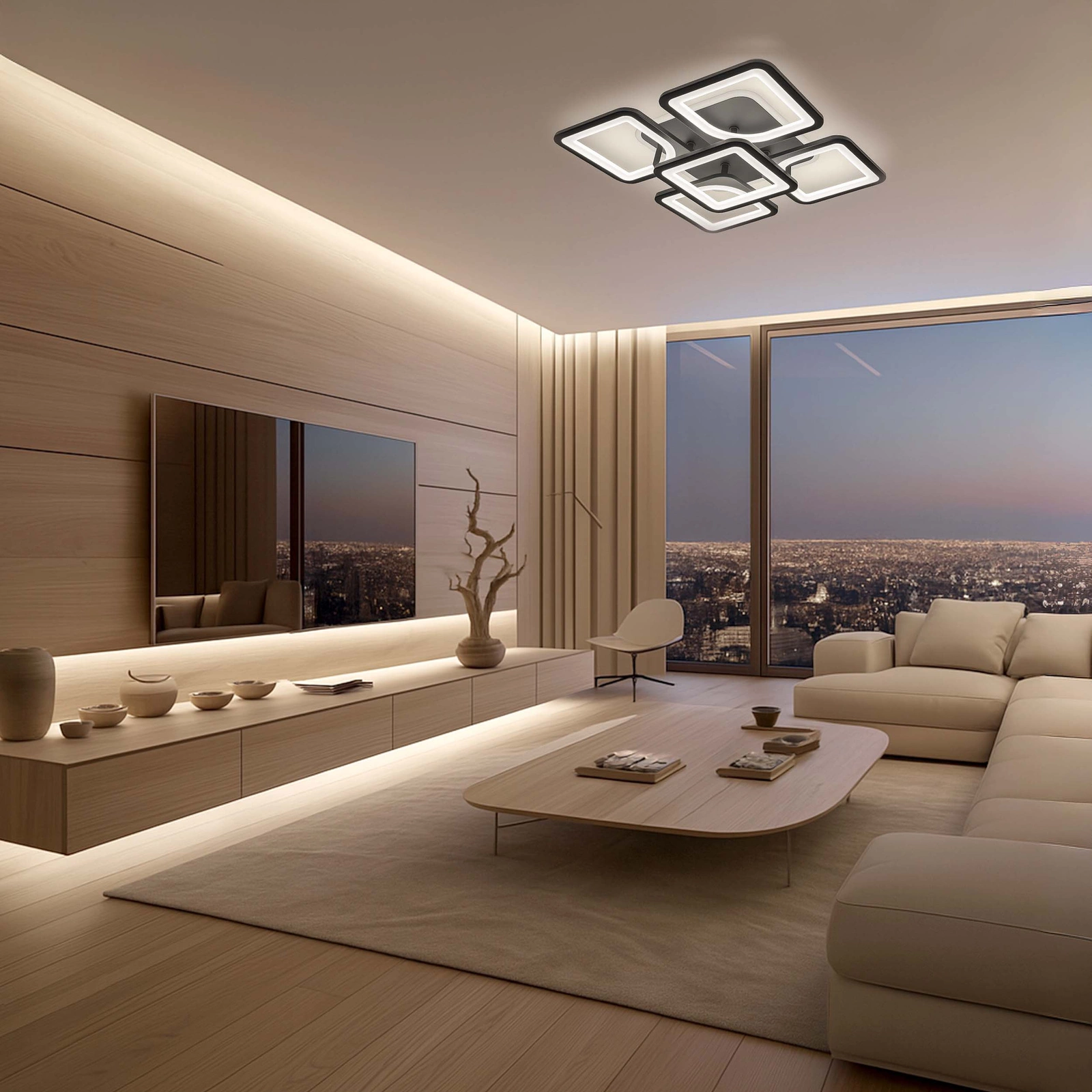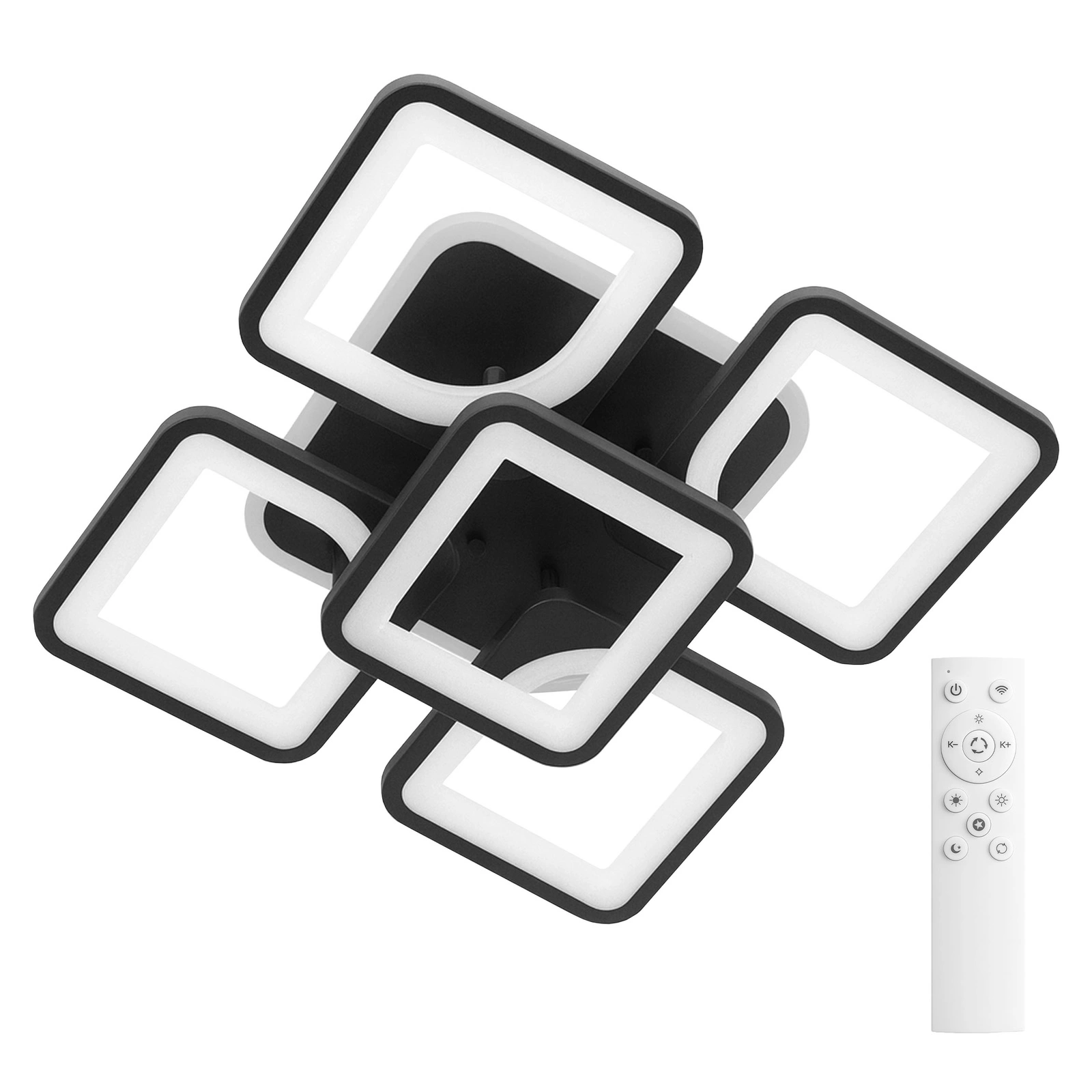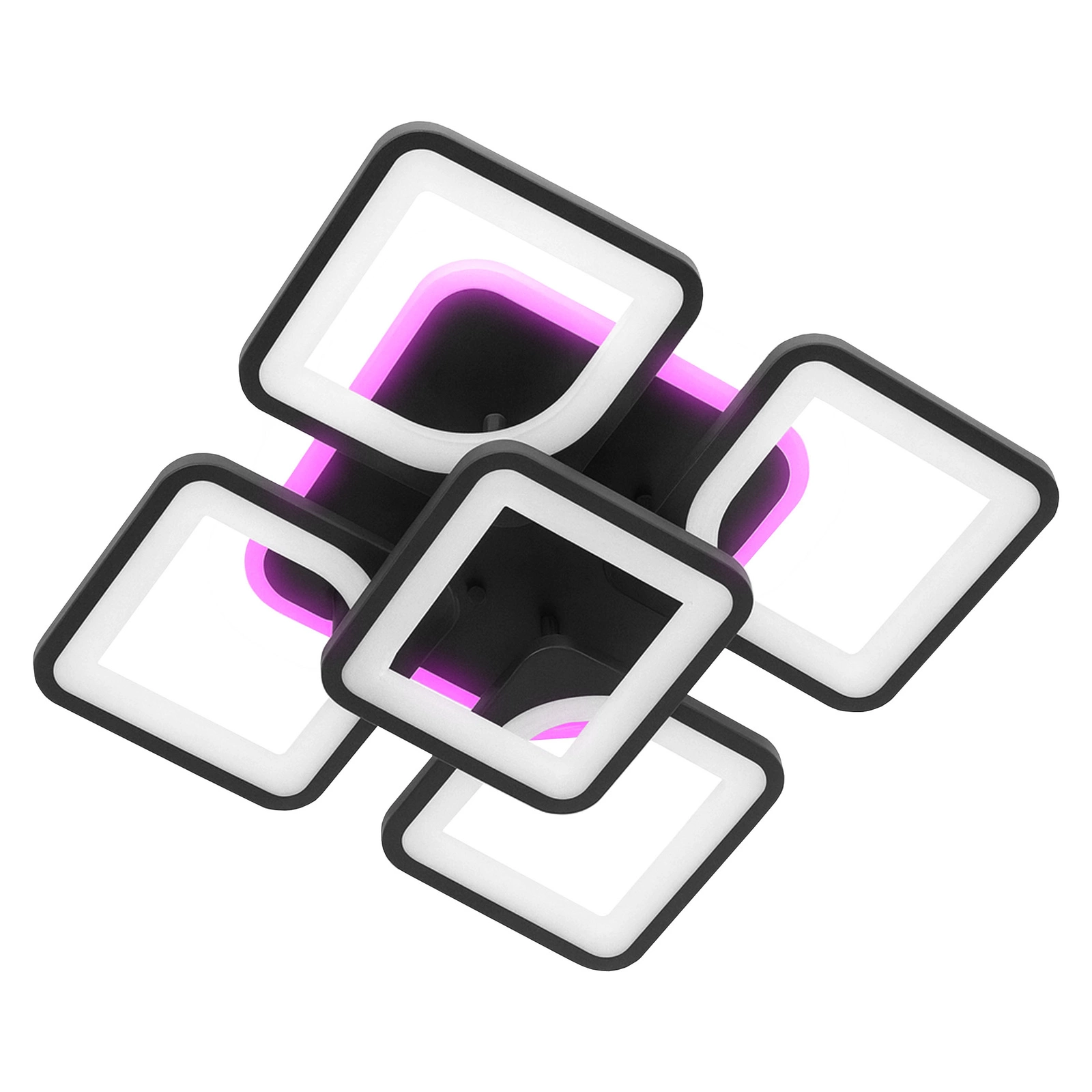 - Ta nowoczesna lampa LED o imponującej mocy 81W to oświetlenie, które natychmiast przyciąga wzrok. Połączenie geometrycznych modułów tworzy wyjątkową kompozycję, dynamiczną w formie i jednocześnie niezwykle elegancką. Górny pierścień z podświetleniem RGB pozwala budować nastrój — od spokojnego, stonowanego światła po kolorowy efekt, który zmienia wnętrze w designerską przestrzeń. To nie jest zwykły plafon. To element wyposażenia, który gra pierwszoplanową rolę w aranżacji.