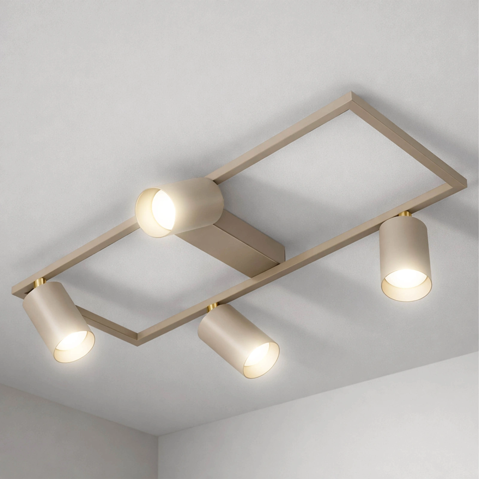 - Ta lampa sufitowa z czterema regulowanymi reflektorami to świetny wybór , gdy zależy Ci na nowoczesnym wyglądzie i praktycznym oświetleniu. Prostokątna, metalowa rama nadaje wnętrzu uporządkowany charakter, a cztery spoty umieszczone po przekątnej pozwalają kierować światło dokładnie tam, gdzie jest potrzebne.