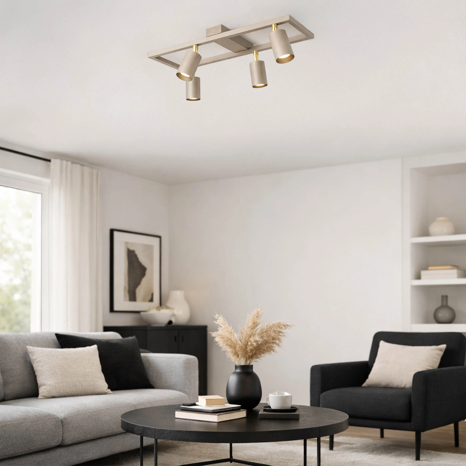 ✔️ Światło zadaniowe i dekoracyjne – cztery punkty świetlne pozwalają zbudować klimat oraz praktyczne doświetlenie stref w jednym pomieszczeniu.